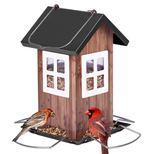 Kingsyard Cute Bird House Feeders for Outside, Hanging Metal Bird Feeder with 4 Ports, Outdoor Ga...
