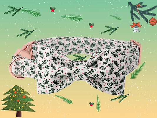 Christmas Dog Collar, Pet Collar Soft with Comfy Bowtie Dog Collar Holiday Adjustable Pet Gift Co...