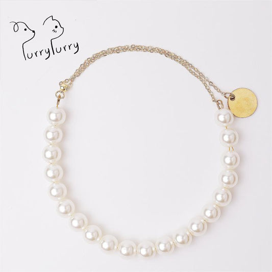 Purrypurry Diamond Cat Pearls Necklace Jewelry for Cat - Bling Rhinestones Cat Wedding Collar - C...