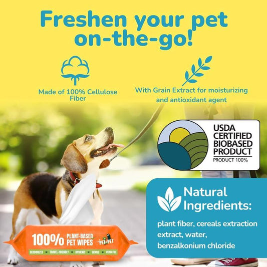PET N PET 100% Plant-Based Hypoallergenic Dog and Cat Wipes, 400 Count, 8"X8" Unscented...
