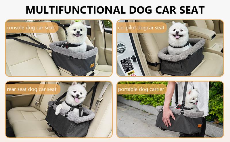 Compared to other soft and collapsed center console car seats , our upgraded dog car seat uses a sturdy metal frame, solid bottom board, with comfortable plush cushions, safe and secure straps, so your pet can say goodbye to the rocking car journey and have a stable and comfortable pleasant outing experience!