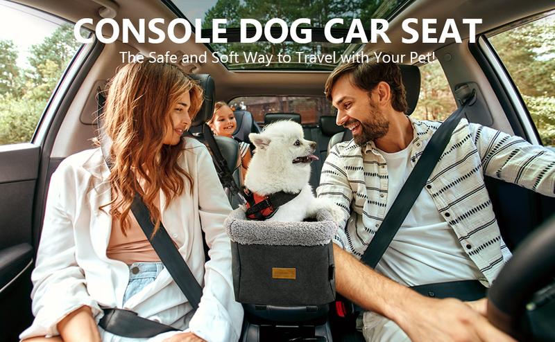 Burgeonnest Dog Car Seat for Small Dog, Center Console Dog Booster Seat with Metal Frame, Upgraded Pet Car Seat with Double Protection Seat Belts, Washable Cushion, Safety Leash and Storage Pocket